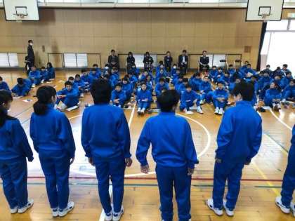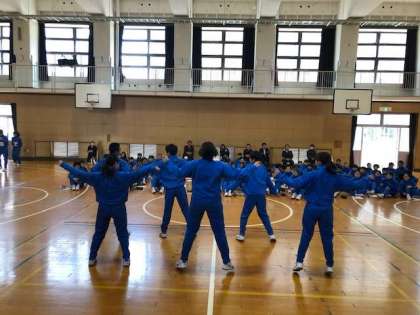 担任の先生をはじめ多くの先生たちも鑑賞と応援に来られて、大盛り上がりの体育館です!