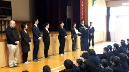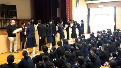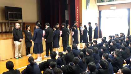 生徒会代表のお礼のあいさつと花束贈呈です。