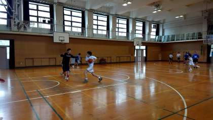 春季大会に向けて、本日男子バスケットボール部は秋の府大会で準優勝した淀川中学校と、大阪市8ブロックの優勝チームである天王寺中学校を招いて練習試合を行っています。