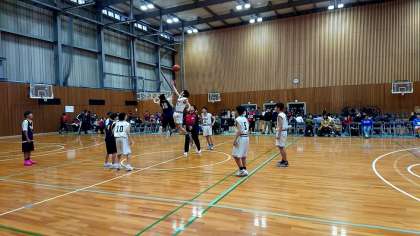 最終試合です。けが人が出てフルメンバーではありませんが、何とか頑張っています。前半を終えて10点リードされています。あと半分です!