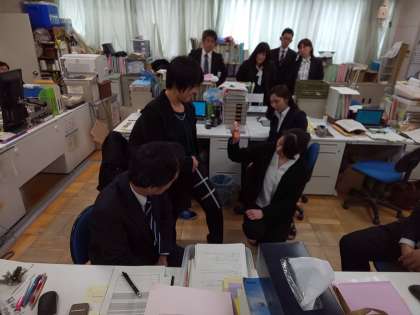 入学式後の打ち合わせの後、健康教育部の先生から『エピペンの使用』研修が行われています。