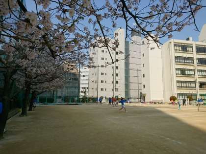 青空がとても気持ちよいなか、2・3年生が練習しています。水分補給も忘れずに!