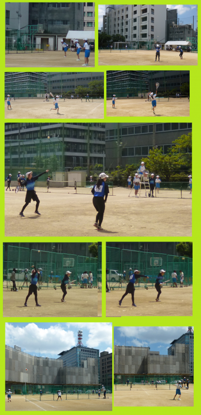 ソフトテニス部が、女子・男子とも本校のグランドで練習試合に勤しんでいます。それぞれ2面ずつでゲームを行っています。大会には出場したことのない1年生にも試合のチャンスが回ってきています。入部して3ヶ月ですが、サーブ・ストローク、ボレーともごーすをしっかりとみてプレーできています。また、ルールも覚えて、審判もしています。スポーツは『する』『見る』『支える』の3つの要素が大切です。1年生のみなさんも、しっかりと3年生のプレーを見て、練習の成果をプレーで発揮し、審判でゲームを支えていきましょう。