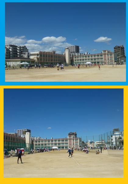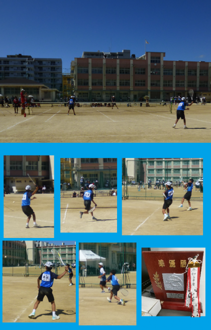 ソフトテニス部の大阪市秋季総体第3支部予選会(団体戦)が三稜中学校を会場にお借りして、行われています。保護者の皆さまも、暑い中、遠方まで応援にお越しいただいています。ありがとうございます。