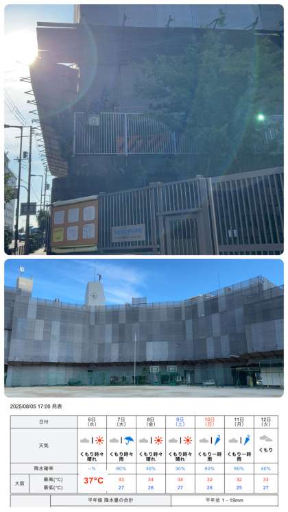 とにかく暑い朝を迎えました。日中の最高気温は37度との予報です。くれぐれも熱中症予防行動を心がけて過ごしましょう。