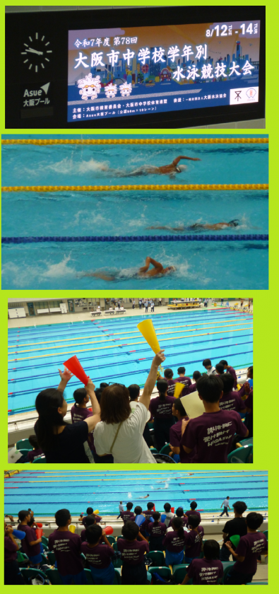 水泳部は、Asue大阪プールで開催されている第78回大阪市中学校学年別水泳競技大会に参加しています。