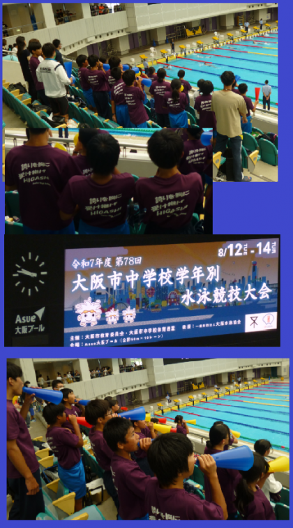 水泳部が、大阪市大会2日目に参戦中。今日は個人種目にたくさんエントリーしています。