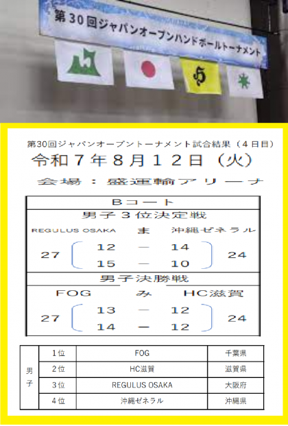 『第30回ジャパンオープンハンドボールトーナメント』全国3位 おめでとうございます!!