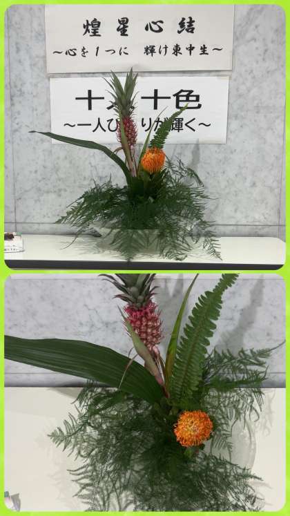 玄関のお花を生け替えていただきました。お題は『アドベンチャー』、お花は『サンライズパイン・ピンクッション・玉しだ・ハラン・アスパラペラ』。『アドベンチャー』は、「冒険」や「わくわくするような体験」を意味する言葉です。2学期に、生徒たちがわくわくするような体験(学校生活・行事も含めて)を通して成長することが楽しみです。2学期もよろしくお願いします。