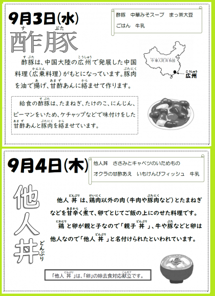 本日の給食です。【9月3日(水)】〜非常変災時の措置について〜