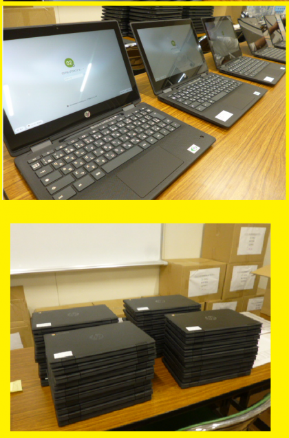 新しい端末に更新してからは、この端末は、毎日の持ち帰りを基本とし、家で学習に利用するとともに家で充電してから、学校へ持参し、授業で使うことになります。担当の先生のお話をよく聞いて、丁寧に、使っていきましょう。お楽しみに!!