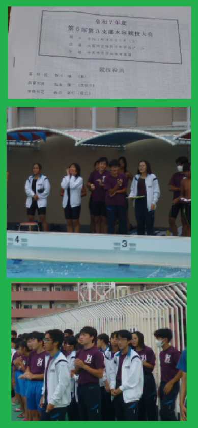 水泳部のシーズンを締め括る大阪市第3支部大会が、8コース兼ね備えた屋外プールで行われました。