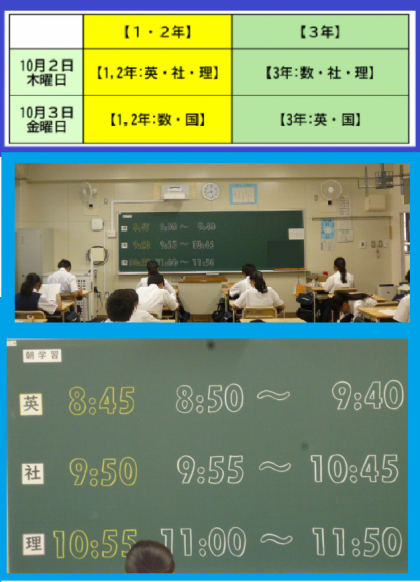 渡り廊下の辺りに『エノコログサ(猫じゃらし)』を見つけました。季節が進み、秋が深まります。今日から中間テストです。元気アップのテスト前学習会、家庭学習などを通じて、ここまで蓄えた力を落ち着いて、集中して発揮しましょう!!