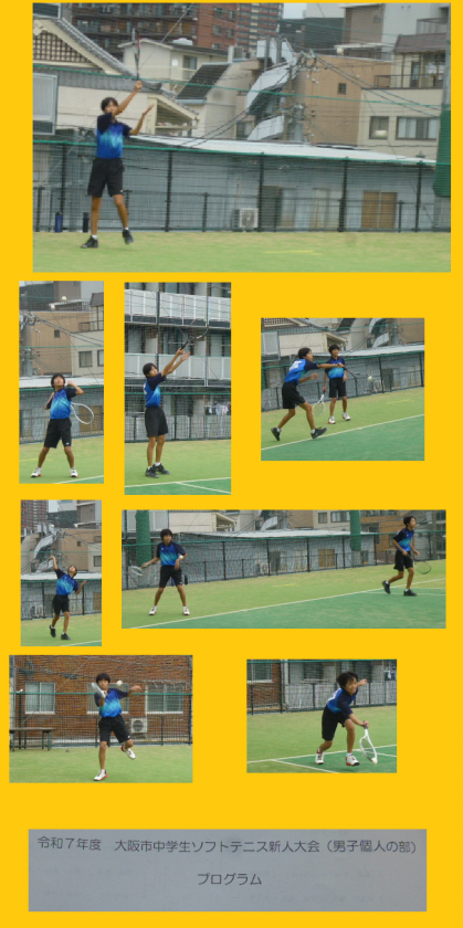 3年生が、活動に区切りをつけて、今日から2年生の大会が始まりました。まずは大阪市中学生ソフトテニス大会(男子個人の部)に4ペアが出場。今日の結果次第で、団体戦の出場が決まるとのこと、1ポイントでも、1セットでもたくさん取りたいところです。小雨の降るコンディションになりましたが、全力でプレーしている姿が印象的でした。