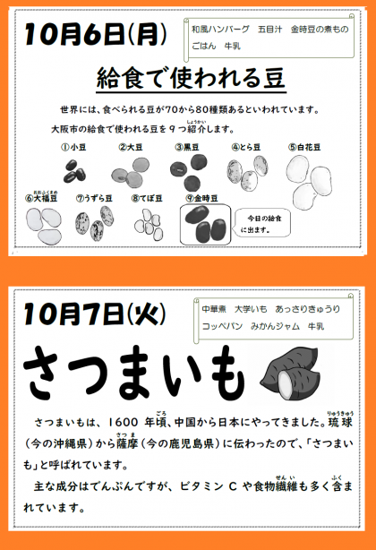 明日は、「中華煮・大学いも・あっさりきゅうり・コッペパン・みかんジャム・牛乳」が提供されますので、お楽しみに。