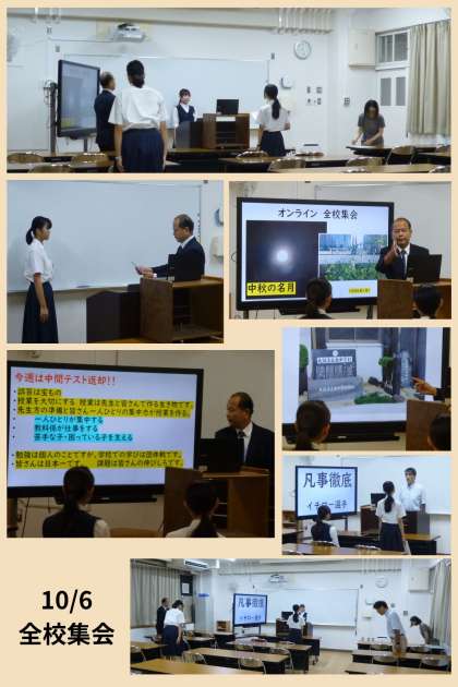 今日の全校集会は、昨夜からの雨の影響で、グラウンドではなくオンラインでの実施になりました。