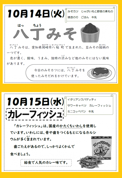明日は「イタリアンスパゲッティ・サワーキャベツ・カレーフィッシュ・ミニコッペパン・牛乳」が提供されます。お楽しみに。