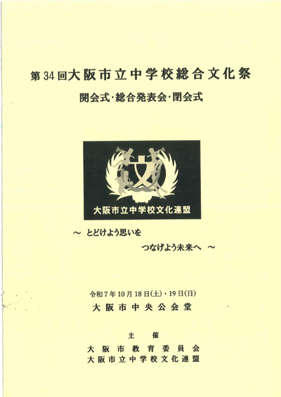 第34回大阪市立中学校総合文化祭(主催 大阪市教育委員会、大阪市立中学校文化連盟)のお知らせ