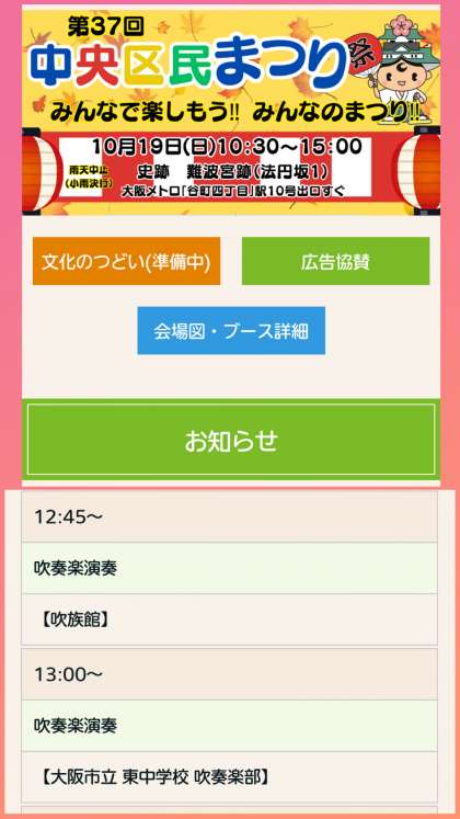 また、明後日の『中央区民まつり』の出演は予定通り13時からの予定です。ぜひ、会場の難波宮跡へお越しいただき、東中サウンドをお楽しみください。