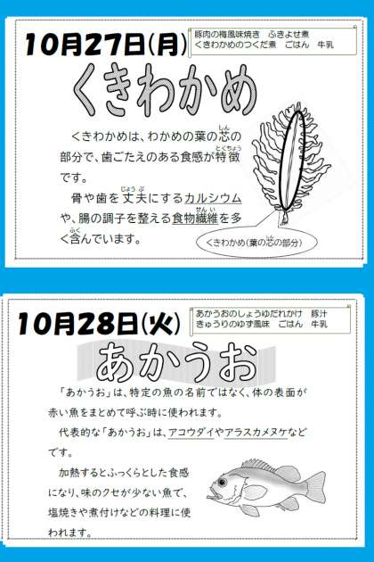 本日の給食【10月27日(月)】