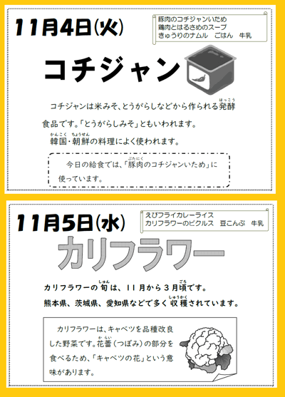 11月給食献立・食育つうしん・給食で食を考えましょう!!