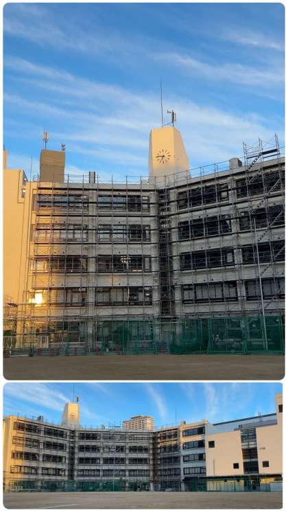 11月になり、新しい1週間が始まります。工事は、校舎を覆っていたシートも全面外れ、足場を外すばかりになりました。もうしばらく、事故のないように安全に留意して進めてもらいます。