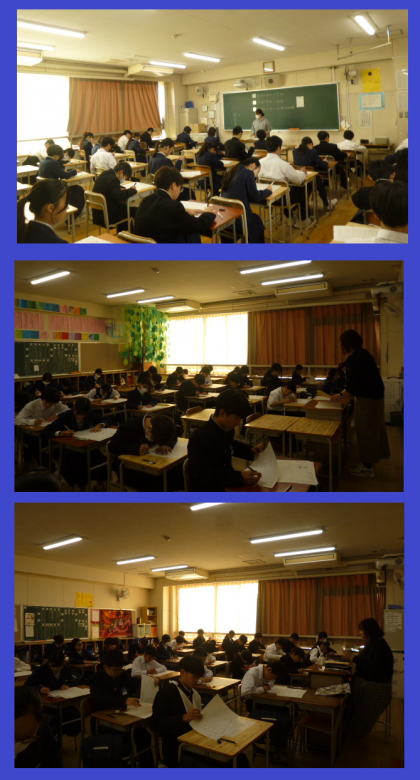 1時間目の社会、問題が配布されたら名前を書いて、さぁ、始めます。