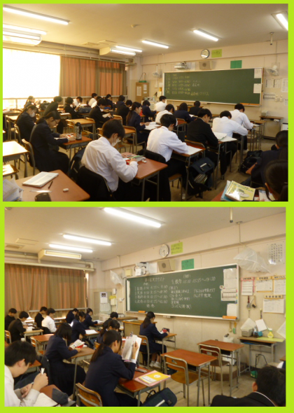 3年生が、進路を決定する大切な資料ともなる第4回実力テストに挑んでいます。生徒たちは、朝の学活後の時間から、各教室は張り詰めた空気の中、最後のチェックに勤しんでいます。これまで取り組んできた学びが、成果として実りますように。