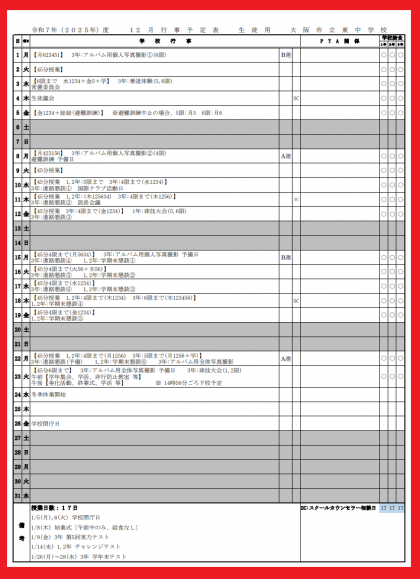 12月 元気アップからのお知らせを掲載します・12月の行事予定表を再掲します。