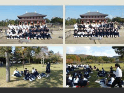 さて、1年生の廊下には、奈良公園での思い出をまとめた掲示物が掲出されています。懇談の前後に是非、ご覧ください。