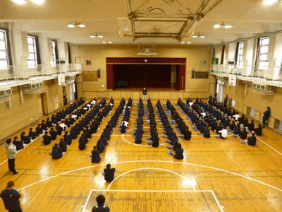 2年生が、毎週木曜日朝の定例の学年集会をしました。各クラスの学級代表がリーダーシップを発揮し、集合・整列、出席確認を実に手際良く行います。今日は、わかくさ学級の担任の先生からのお話です。『何か困難なことに出会ったときには、逃げずに、挑戦していく気持ちを大切にしてほしい』との旨のお話でした。マラソンや長距離走、進路選択など、さまざまに逃げ出したくなる場面、後回しにしたい場面に出会うでしょう。そんな時には、仲間がいることを勇気にかえて、ぜひ、チャレンジしていきましょう。