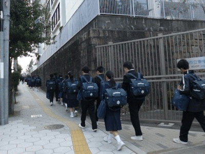 さて、生徒たちは、正門前の歩道の片側を空けて、お急ぎの方が通れるようにマナーよく登校しています。また、正門では、風紀委員が挨拶を交わしながら活動しています。