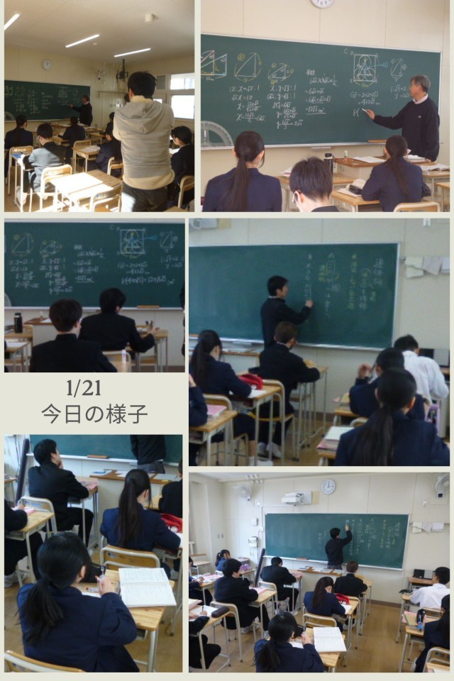 3年生の数学は、ほぼすべての時間を習熟度別に実施しています。今日は三平方の定理の応用問題に挑戦中でした。おりしも卒業アルバムに載せる授業風景を写真屋さんが取りに来ていたところにバッティング。担当の先生は、子どもたちに説明の後、にこりとカメラ目線に。緊張していた子どもたちも思わず緊張がほぐれた瞬間でした。