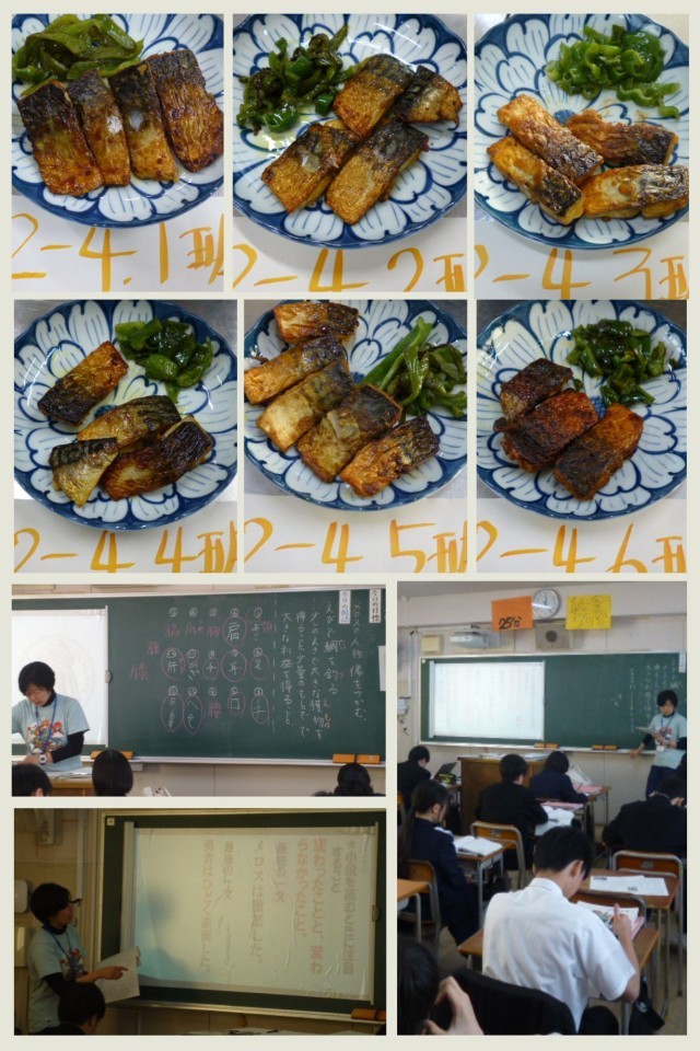 2年生では今日も調理実習に挑むクラスがありました。昨日の様子と比べてどちらがおいしそうでしょうか。今日の写真はこころなしか昨日のお皿よりも盛りがいいような。たくさんおいしく食べてくれていることでしょう。