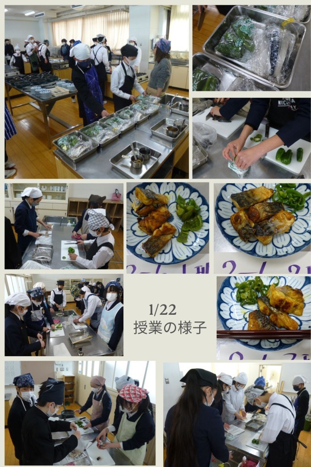 2年生では今日も調理実習を行っています。今日のクラスの生徒に「おうちで料理はするの?」と尋ねると「しませーん」と元気な声で返してくれました。調理経験の少ない子どももいるようですが、さばの大きさに驚きながらもきれいに切ってくれています。中には、手際よくピーマンの種を取り出す子供もいます。それぞれに楽しく、またおいしく実習に取り組んでいます。
