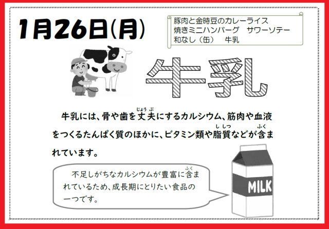 本日の給食です。【1月26日(月)】