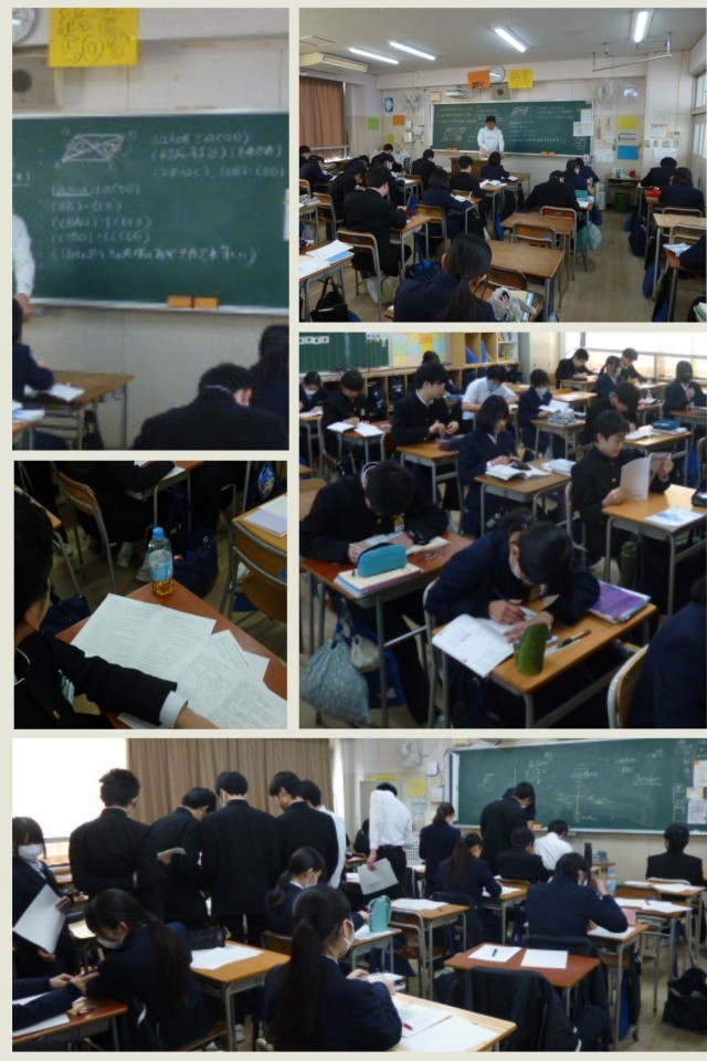 最後は3年生の英語の紹介です。3年生は昨日で中学校で受ける最後のテストが終わりました。今日からはテスト返却です。取材をしていると、子どもたちの間からうれしい声が聞こえてきました。「前のテストの2倍の点を取ったんですよ。」難しくて苦戦する子どもも多い中、声をかけてくれた子どもは嬉しそうに教えてくれました。入試直前の大事な時期に、これまで鍛えた力が仕上がってきたのはうれしい話です。写真のシーンはテストの解説が終わって子どもたちが個別に先生まで質問に行くところでした。多くの子どもが挑戦する私立高校の入試まであと二週間ほどになりました。最後までどん欲にレベルアップを図ってくれると嬉しいです。