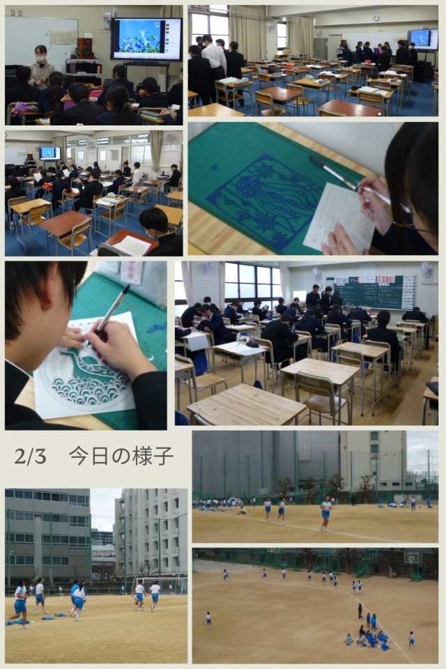 3年生からは美術を紹介します。いよいよ切り絵の単元も終わりに近づいてきました。いち早く次の篆刻で挑戦するハンコのデザインを考える子どもが増えてきました。自分の名前から1字取り出して何種類もデザインする姿や、好きな物の形と自分の名前を組み合わせてデザインする姿が見られました。一方、最後まで切り絵に挑戦している子どもの作品をのぞかせてもらうと、とても複雑で、また美しい作品を作っている子どもがいました。二人に協力してもらい、写真を撮らせてもらっています。小さいですが、雰囲気だけでも伝わればと思います。