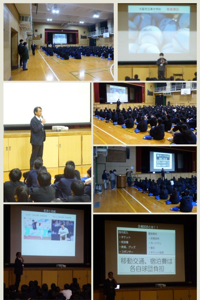 今日はオリックスバファローズより、講師の方をお招きし、プロ野球に関わる仕事を題材にしながら、そこに関連して様々な職業があることを教えていただいています。