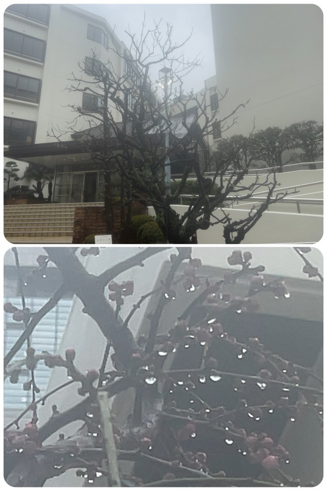 雨が上がり、寒さが緩んでいます。湿度が高く、掲示物は、水気を含んでぶよぶよになってきました。その一方で、玄関の梅の蕾は膨み、梅の木の全体が色付いてきたようです。開花が楽しみです。