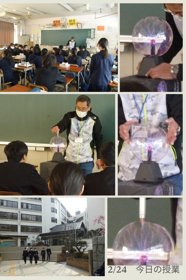 自習時間も多く見られましたが、2年生の理科の授業では、電気の性質の単元の中で放電球を用いて電気の流れを目にする実験を取り入れていました。こちらは中学生の理科の実験の充実に向け、とわかば財団皆さんのご協力で実現した実験です。