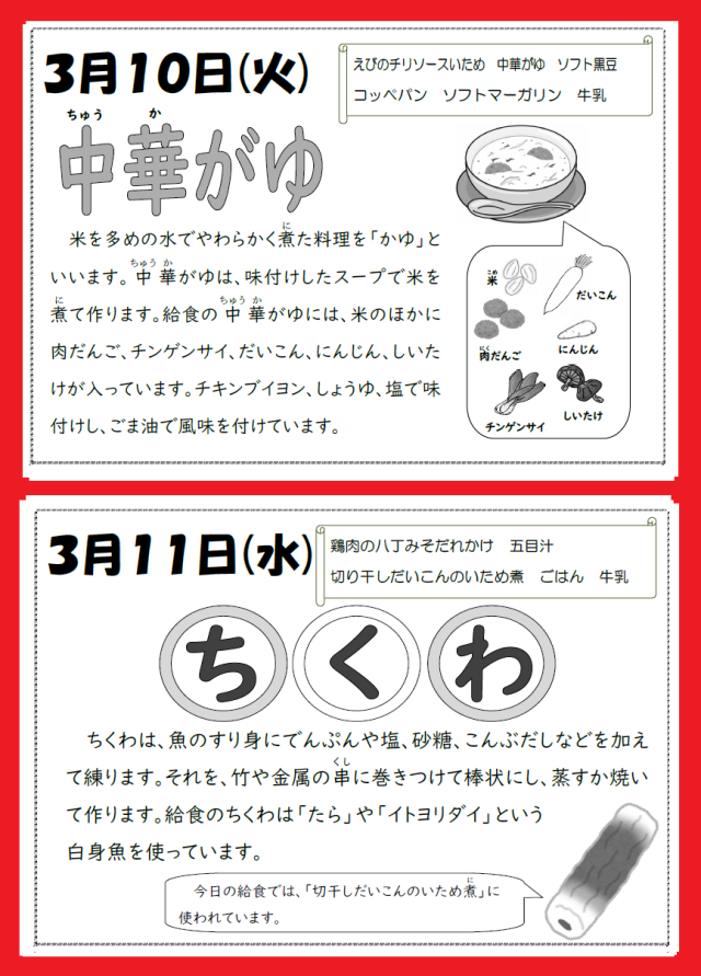 本日の給食です。【3月6日(金)】~本日は予餞会を行います。~