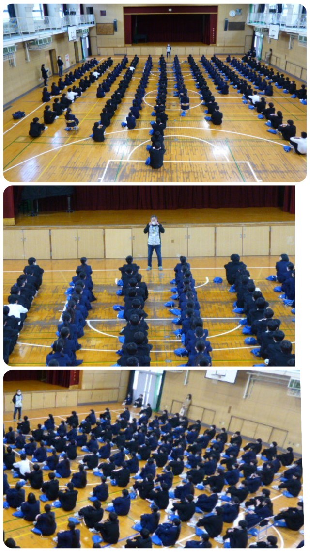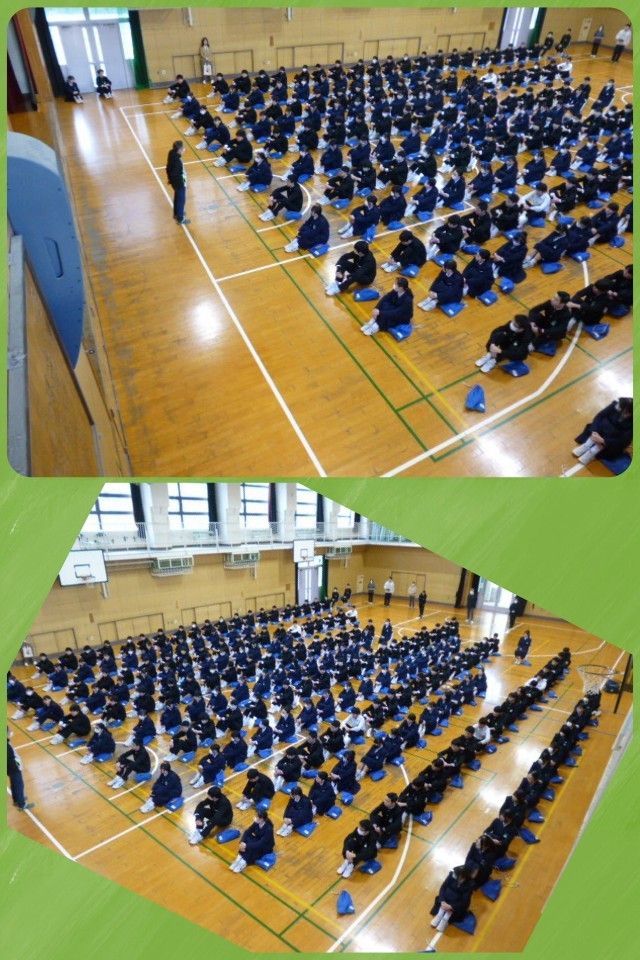 3年生の朝の学年集会は今日が最後になりました。卒業式まで1週間。今日は理科のご担当の先生から生徒たちにエールが送られました。