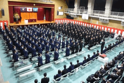 卒業式から一夜明けて、土曜日の体育館では、卒業の歌の余韻が残る中、部活動が行われています。