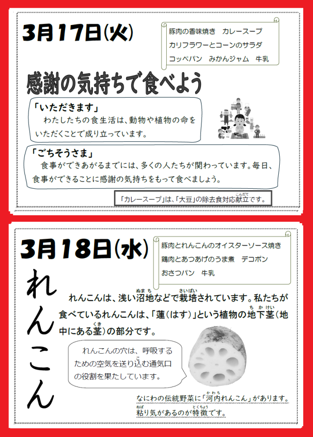 本日の給食です。【3月17日(火)】