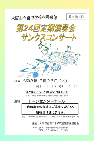 吹奏楽部 サンクスコンサートへの誘い♪