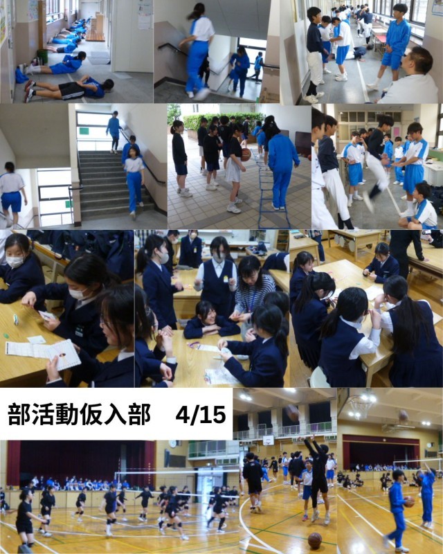 昨日と今日で仮入部期間は終わり、明日にはいよいよ部活動編成を実施します。1年生の子どもたちは、あちらこちらの部活動に見学や体験に行き、楽しく放課後を過ごしています。これからどの部活動に参加するか、決まったでしょうか?