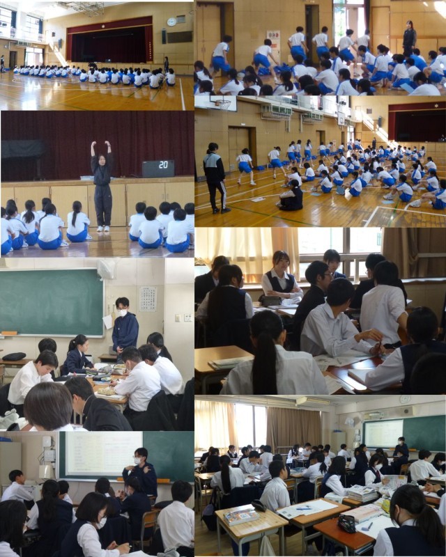 続いて体育館では2年生の体育の授業を行っていました。ここでもスポーツテストに向けた、体操と反復横跳びの練習です。