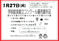 新年1月の給食献立表を掲載します。1月8日(木)の始業式には、給食は提供されませ...