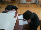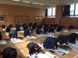 2年生は自己申告書の清書をしています。間違わないように…。丁寧な字で…。 集中し...